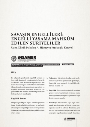 Engelli bireyler için oldukça zor geçen bu sürecin devlet eliyle ve resmî kurumlar tarafından sağlıklı, bilinçli ve toplumu da içine alacak bir şekilde yönetilmesi büyük önem arz etmektedir. Artık bir kriz olmaktan çıkıp süreç haline gelen Suriye savaşı neticesinde ülkemize gelen binlerce engelli Suriyelinin yaşadığı sosyal, ekonomik, psikolojik, sağlık ve eğitim alanındaki sorunların çözümüne duyulan ihtiyaç giderek daha büyük bir aciliyet arz etmekte ve zorunluluk olarak karşımıza çıkmaktadır.