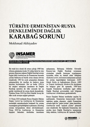Dağlık Karabağ sorunu genellikle Azerbaycan-Ermenistan ilişkileri veya Moskova-Bakü-Erivan ve Ankara-Bakü-Erivan üçlüleri kapsamında değerlendirilmektedir. Ancak Dağlık Karabağ ile Ermenistan arasındaki ilişkiler çoğu zaman ya göz ardı edilmekte ya da hiç bilinmemektedir. Hâlbuki bu ilişkiler, Dağlık Karabağ sorununun geleceği açısından çok önemlidir. Bununla birlikte, Dağlık Karabağ ile Ermenistan arasındaki siyasi ilişkiler genellikle zannedildiğinden farklı olarak inişli çıkışlı bir seyir izlemektedir. Bu bağlamda 2020 yılında Dağlık Karabağ’da yapılan cumhurbaşkanlığı ve parlamento seçimleri, Ermenistan-Dağlık Karabağ ilişkilerinin geleceğini anlamak açısından önem teşkil etmektedir.